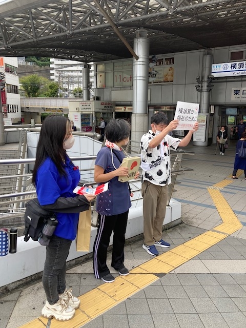 10月6日(金)横須賀中央駅前のYデッキにて、赤い羽根共同募金に参加しました。「赤い羽根共同募金にご協力おねがいします!」と元気に呼びかけをおこないました。